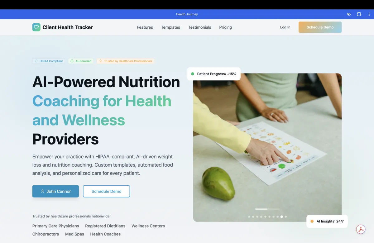 "I used to dread reviewing food journals; it took hours and never told the real story. With Client Health Tracker, a simple photo becomes clear micronutrient flags and habits I can act on. My clients love the gentle reminders, and I love that stalls are caught early. The momentum shift has been unreal."